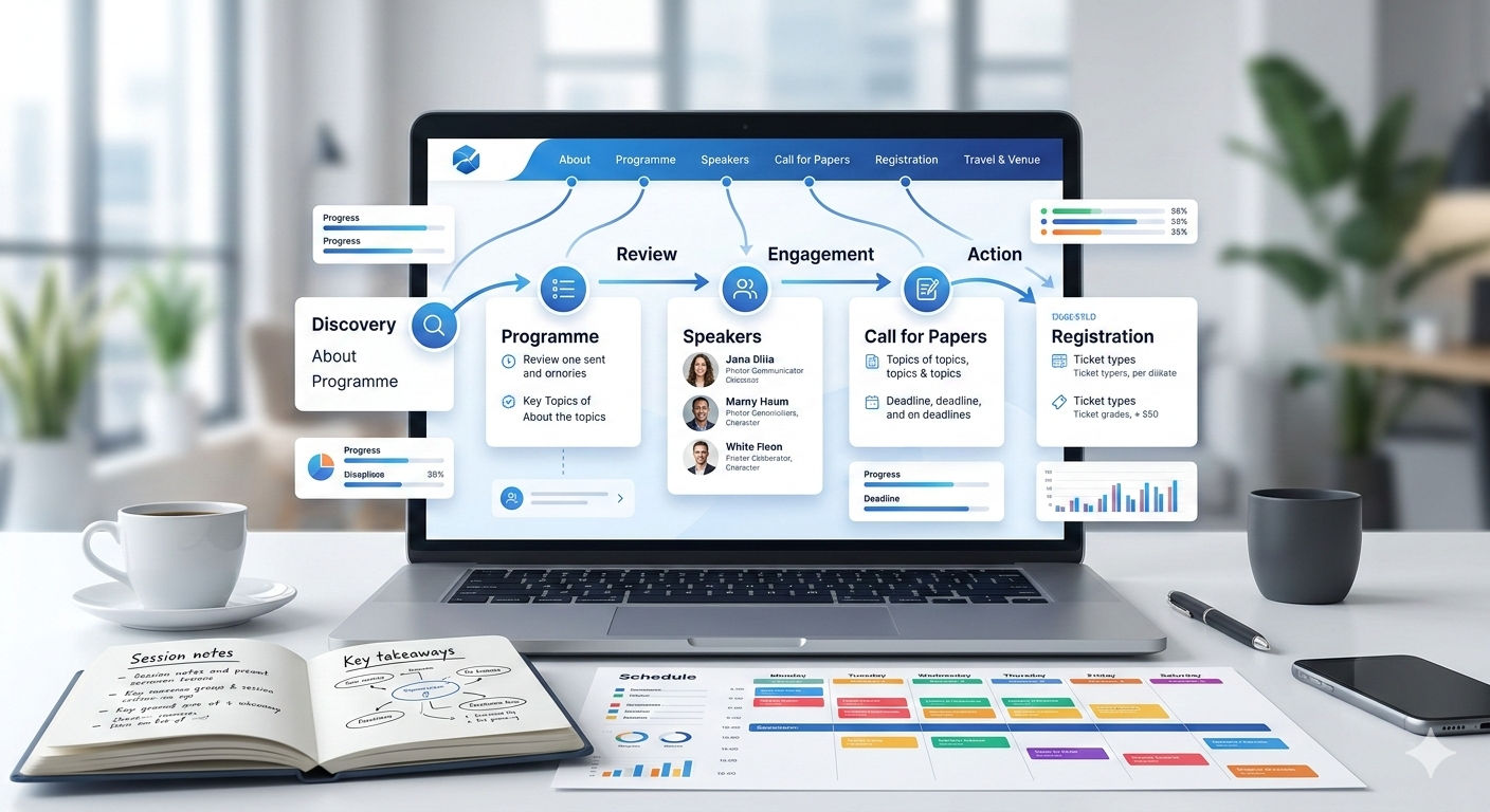 Key Insight: Research by Eventbrite on conference registration behaviour found that 78% of professional event registrations happen within two weeks of a significant promotional touchpoint an email, a social media post, or a personal recommendation and that the conference website is visited by the vast majority of these potential registrants before they register. The website's job is not to generate the initial awareness; it is to convert the intent that other channels generate. A conference website that fails to communicate value quickly and make registration frictionless loses a disproportionate share of these already-motivated visitors.