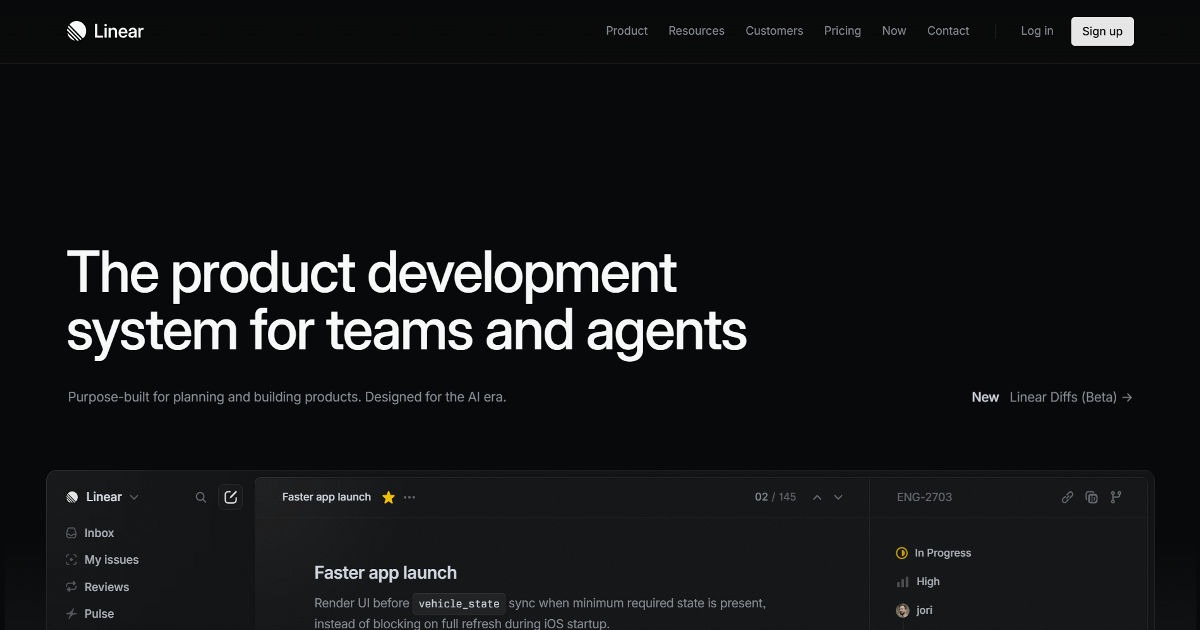 - Ruthlessly specific headline: "Linear is a purpose-built tool for planning and building products." Not "the best project management software" — a specific, honest description of exactly what it is.